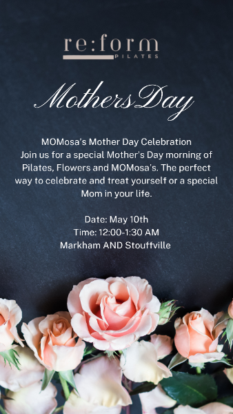 Join us for a special Mother’s Day morning of Pilates, Flowers and MOMosa’s. The perfect way to celebrate and treat yourself or a special mom in your life.